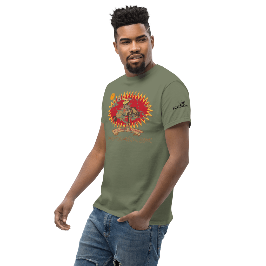 PLAYERA CABALLERO MANGA CORTA ESCOTE REDONDO ELABORADA EN FINO ALGODON 100% PEINADO GRAFICO EN SERIGRAFIA DTG AL FRENTE,MANGA IZQUIERDA Y DERECHA Y TAMBIEN EN ESPALDA. TALLAS DE LA S A LA XXL COLORES NEGRO,MARINO Y GRIS. LLEGA DE 15 A 20 DIAS HABILES CON ENVIO GRATIS